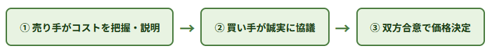 - コストが変動した場合、その要因と水準を買い手に誠実に説明すること